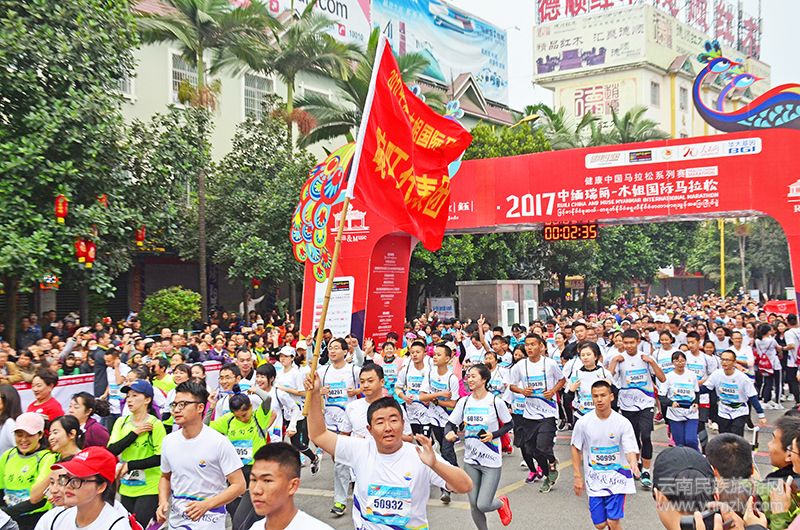 2017年12月31日上午,隨著一陣喜慶的鳴笛聲響起,來自19個(gè)國家和地區(qū)的7508名運(yùn)動員一股激流奔進(jìn)的山泉在2017中緬瑞麗-木姐國際馬拉松開賽起跑儀式上盛大開跑,用跨國跨年、健康向上的方式迎接新一年的到來。