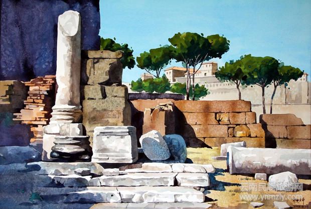 2012年10月,水彩畫(huà)《羅馬古城》發(fā)表在《水色樂(lè)章-----第八屆云南省水彩、粉畫(huà)作品展》作品集上。