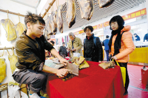 在省科技館的年貨街上,市民正在購(gòu)置年貨。記者杜文蕾攝