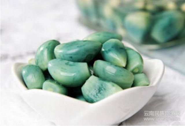 泡臘八蒜是北方,尤其是華北地區(qū)的一個習(xí)俗。顧名思義,就是在陰歷臘月初八的這天來泡制蒜。做法極其簡單,將剝了皮的蒜瓣兒放到一個可以密封的罐子、瓶子之類的容器里面,然后倒入醋,封上口放到一個冷的地方。慢慢地,泡在醋中的蒜就會變綠,最后會變得通體碧綠的,如同翡翠碧玉。