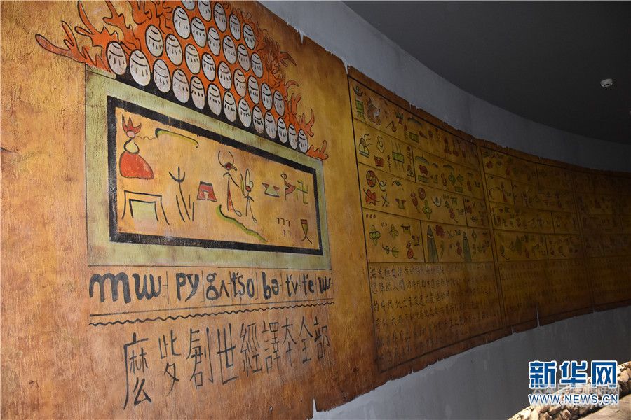 納西史詩(shī)《創(chuàng)世紀(jì)》展示墻。和占惠 攝