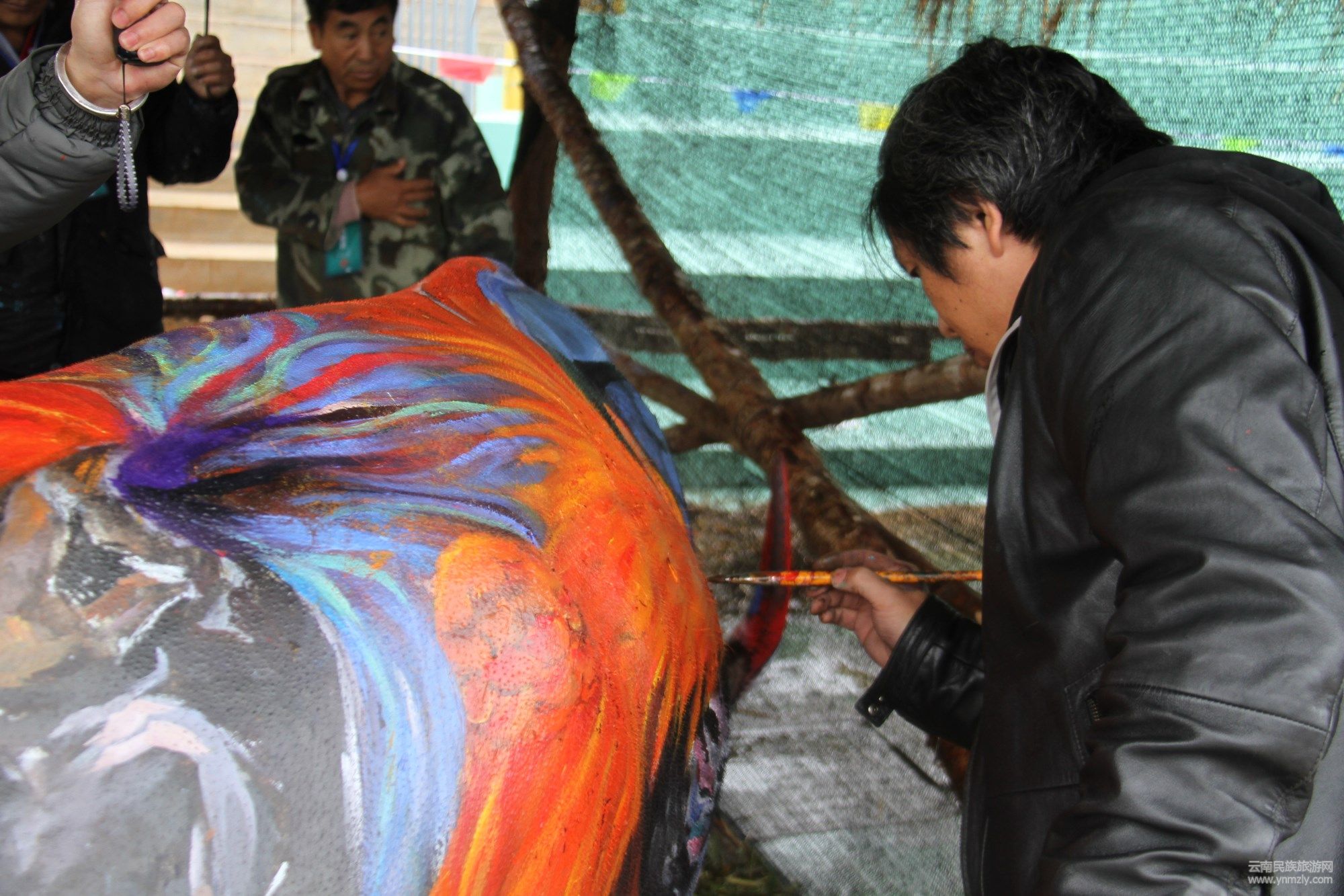 比賽之前,參賽隊們提前給牛洗好了澡,剃了牛毛,準備在比賽時大顯身手。各參賽繪畫師們專心致志、一絲不茍著揮動著手中的畫筆,懷著對藝術(shù)的無限追求,盡情揮灑,在牛的身上描繪出一幅幅活靈活現(xiàn)的圖案。賽場上,一條條色彩斑斕的火牛昂首挺胸地走動著,向人們展示著大豐收、美麗中國夢、祥和的邊城等在黨的領(lǐng)導(dǎo)和各族人民的共同努力下所取得的豐碩成果。