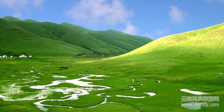 草甸、鮮花、小溪、藍天、白云、羊群,構(gòu)成了一幅優(yōu)美迷人的圖畫。于是,人們都說--大海草山,是云層上的仙境,是童話般的人間,是攝影家的天堂……