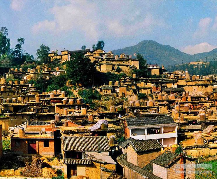 城子古村最有特色的就是她的建筑了,一樣是彝族傳統(tǒng)“土掌房”,但是由于整個村子都依山而建,所以,造就了獨特的“下層的屋頂就是上層的曬谷場”的奇觀,被譽為“瀘西布達拉宮”。