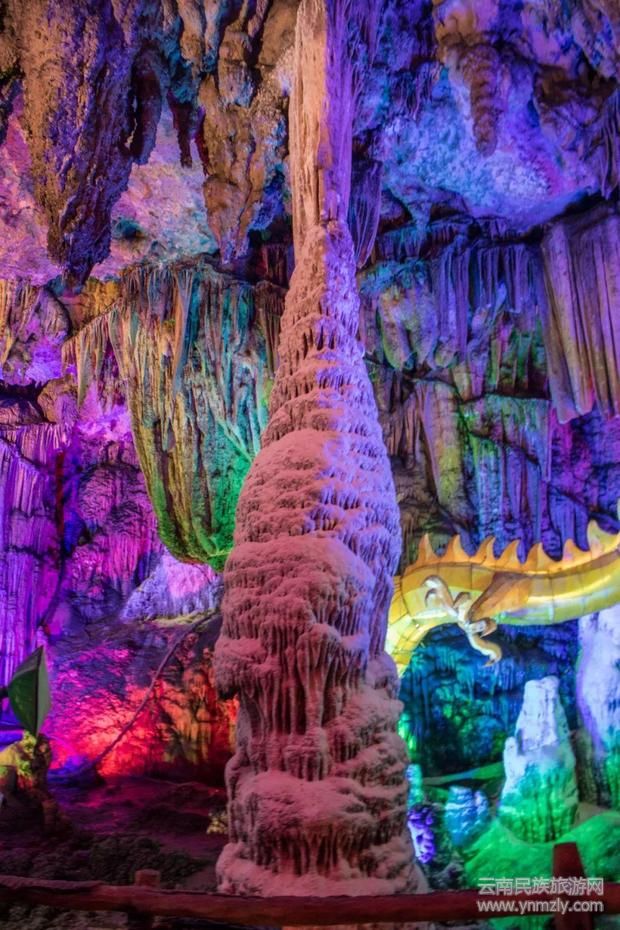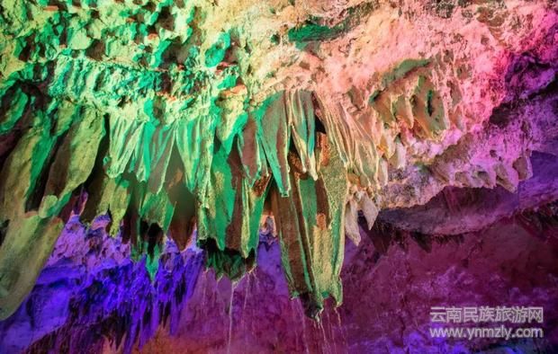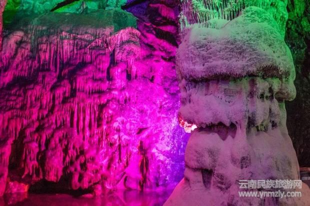 進(jìn)入西游洞中,讓我印象最深刻的便是妖精洞和由鐘乳石景觀組成的海底龍宮。進(jìn)入西游洞中,色彩斑斕的燈光將形狀各異的鐘乳石裝點(diǎn)得如夢似幻,潔白的鐘乳石在燈光的照映下閃著絢麗的燈光。