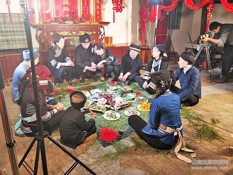本次拍攝活動(dòng)場(chǎng)景布置從1月2日開(kāi)始,1月5日上午開(kāi)始拍攝。拍攝首先在溫瀏鄉(xiāng)石別村進(jìn)行,丘北壯族廚師何建端展示了烤香豬、醬瀆魚(yú)、石斛雞等拿手好技;壯族花米飯傳承人、本節(jié)目新娘扮演者何瓊鑫現(xiàn)場(chǎng)展示了壯族七色花糯從原料采摘到七色花米飯上桌的整個(gè)過(guò)程。此外,同行的“新郎”、“陪郎”、“伴娘”、“哥哥”、“妹妹”們,也一起展示如何舂壯族糯米粑粑、如何制作包“老鼠豆”的月亮粑……最后是一桌豐盛的壯族年夜飯做成,四代同堂的一家人,邊相互祝福,邊唱原生態(tài)的壯族民歌,共享太平盛世里全家團(tuán)聚的喜慶場(chǎng)景。