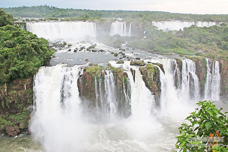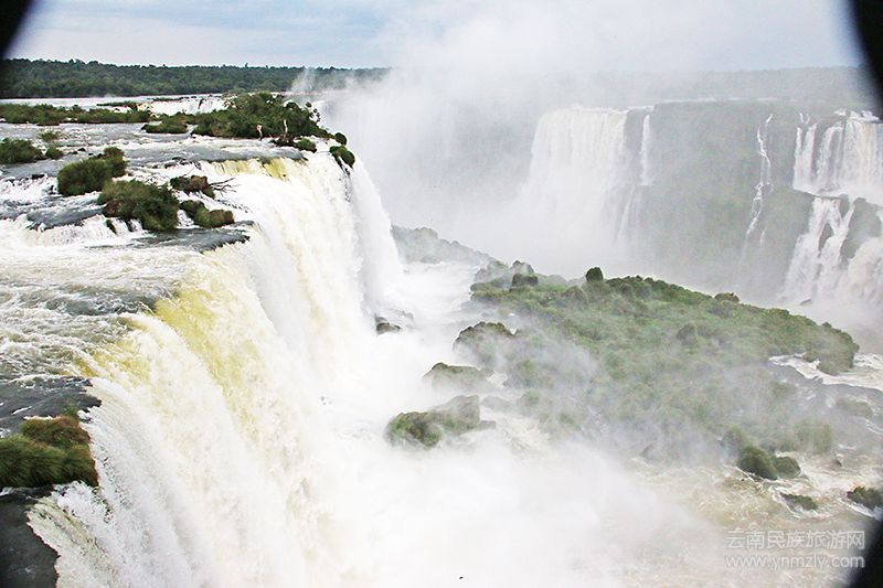 昨天乘直升飛機(jī)從空中看了伊瓜蘇瀑布,直觀感受了伊瓜蘇瀑布的行成,特別是她與其他瀑布不一樣的地方:不是一字排開的形狀,而是以一個類似馬蹄形的大瀑布為主,延伸出其它275個大小不等、寬窄不一、臺節(jié)、層級不同的瀑布。