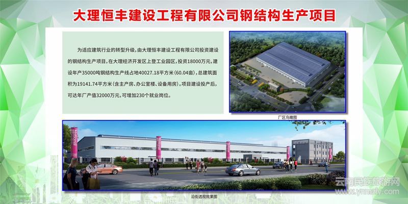 大理恒豐建設(shè)工程有限公司年產(chǎn)3.5萬(wàn)噸鋼結(jié)構(gòu)生產(chǎn)項(xiàng)目,總投資1.8億元,占地面積60畝,主要實(shí)施廠房、辦公樓、設(shè)備用房等配套設(shè)施建設(shè),計(jì)劃于明年5月建成投產(chǎn)。項(xiàng)目建成后將形成年產(chǎn)3.5萬(wàn)噸鋼結(jié)構(gòu)的生產(chǎn)能力,實(shí)現(xiàn)年產(chǎn)值3.2億元,稅收178萬(wàn)元,解決230個(gè)就業(yè)崗位,為我州建筑行業(yè)實(shí)施轉(zhuǎn)型升級(jí)起到示范帶動(dòng)作用。