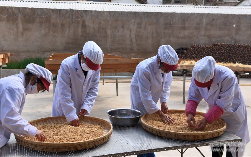 工人正在認(rèn)真挑揀豆子。(吳再忠 攝)