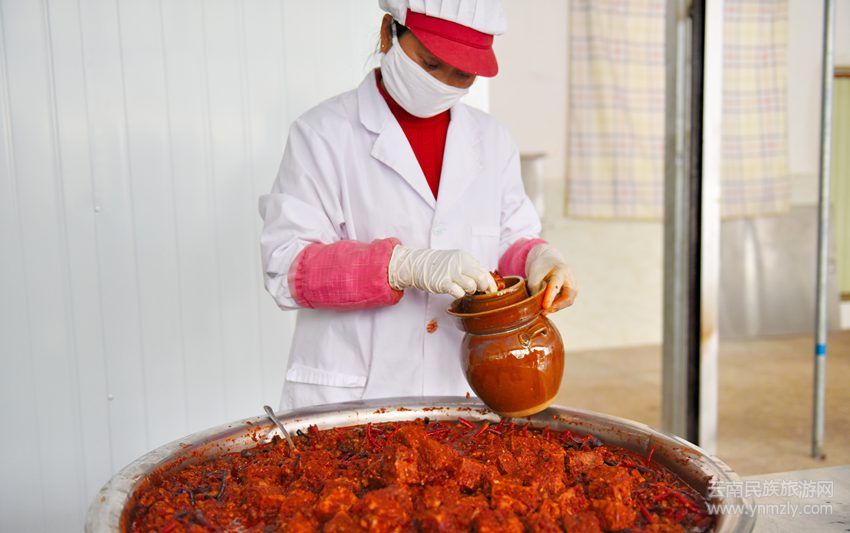 工人正在腌豆腐 。(吳再忠 攝)