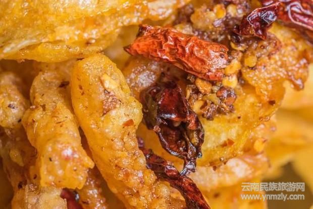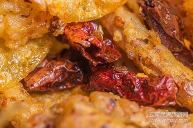 由于加入干辣椒和各種配料腌制了很長(zhǎng)時(shí)間,又油炸至香脆無(wú)比,絕對(duì)是下酒菜排行榜第一的菜品。