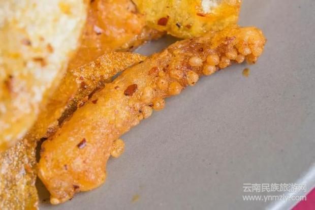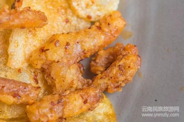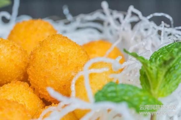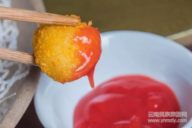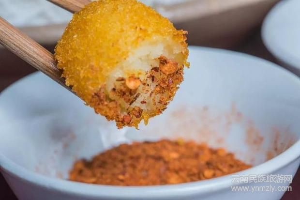 手工做成的洋芋圓子,炸制金黃