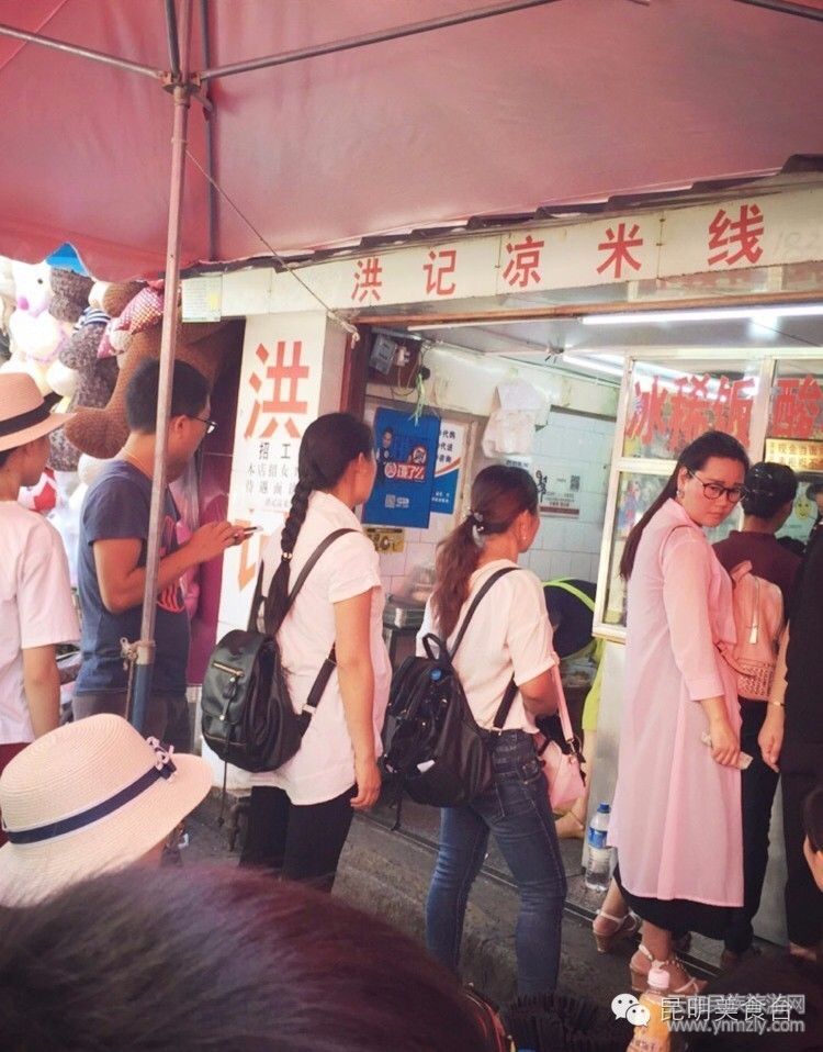 這個算的上玉溪最出名的涼米線吧,看看這人多的難受啊,吃個涼米線排隊20分鐘以上,還得搶座位,為了這次排隊直接涼面、涼米線、涼卷粉、冰稀飯、木瓜水一樣來了一份,口味的確很不錯,怪不得如此多人排隊。