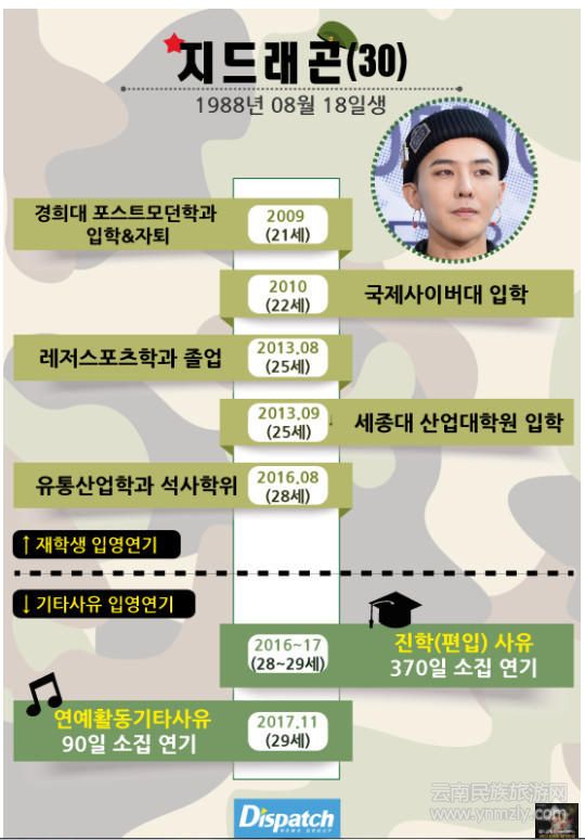 ● 網曝權志龍是碩士學歷 為延長入伍時間用多種辦法 ( 2018-02-06 )