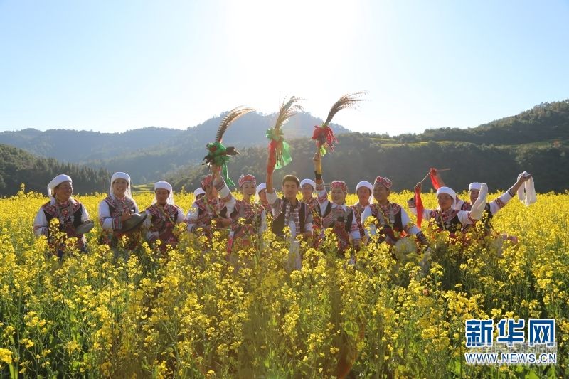 在玉溪市峨山彝族自治縣,“梁子一路情•扎實(shí)唻果嗦”開新街暨油菜花文化旅游節(jié)于近日在塔甸鎮(zhèn)、富良棚鄉(xiāng)、大龍?zhí)多l(xiāng)、甸中鎮(zhèn)、岔河鄉(xiāng)等地舉行。節(jié)日期間,十里八鄉(xiāng)的彝族群眾身著節(jié)日盛裝,在金黃的油菜花田間吹奏著過(guò)山號(hào),耍龍燈,跳花鼓舞,祈求風(fēng)調(diào)雨順、五谷豐登。