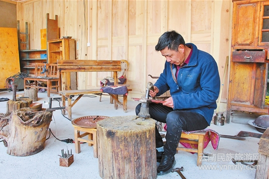 一個偶然的機會,和善均發(fā)現(xiàn)很多游客對他制作的納西銅器很感興趣,便在離家400米的白沙古街租了一間40多平方米的店鋪銷售銅器,生意一直很好。去年,他又在自家的院落里新建了納西銅藝展示體驗館,平均每天可接待10多名游客,收入從當(dāng)初的每年5萬多元增加到40多萬元。