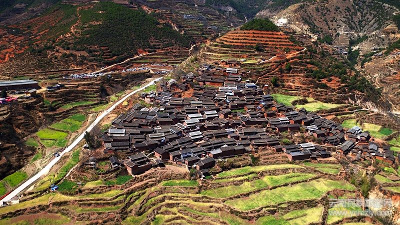 航拍直苴村。新華網(wǎng) 馬航 攝
