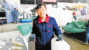 3月7日,記者在昆明真喜塑料制品有限公司的車間見(jiàn)到了這位24歲的姑娘。盡管機(jī)器的轟鳴聲不小,但她絲毫不受影響,正麻利地用小刀加工塑料桶的邊角。不到3分鐘,一件新的塑料桶便加工完成。