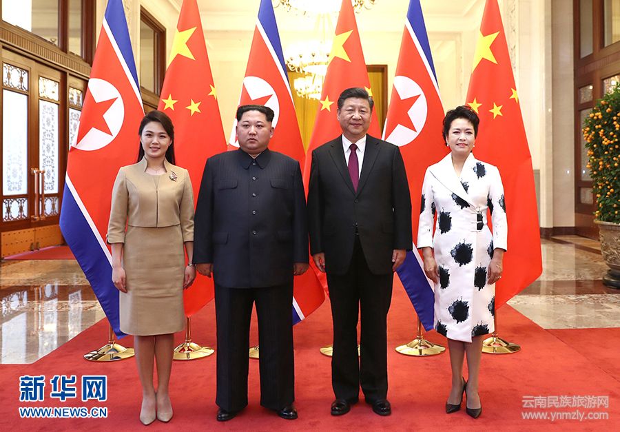 3月25日至28日,應中共中央總書記、國家主席習近平邀請,朝鮮勞動黨委員長、國務委員會委員長金正恩對我國進行非正式訪問。訪問期間,習近平同金正恩舉行會談。這是習近平和夫人彭麗媛在人民大會堂同金正恩和夫人李雪主合影。新華社記者 鞠鵬 攝