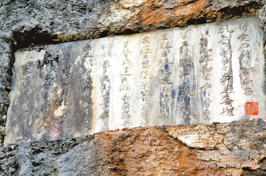天柱崖石刻詩是王士性經(jīng)過定西嶺所作的一首五言古體詩,詩題為《行定西嶺即事》,生動記述了行走定西嶺古驛道上的所見所聞所感。王士性還親筆題書,行書生氣勃勃,行云流水,鐫刻于一塊大理石上,鑲嵌在陡峭如削的天柱崖上,具有很高的藝術(shù)價值和文物價值。從“萬歷辛卯中秋日”的落款得知,該詩刻于萬歷十九年(1591年)八月十五中秋節(jié),距今已經(jīng)有426年。
