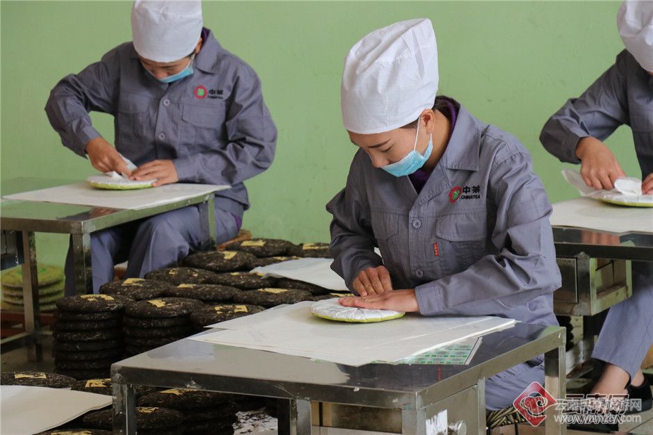 茶廠工人在包裝茶餅