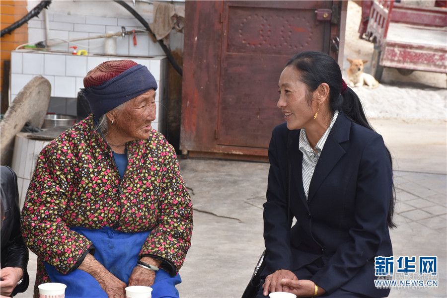 十九大代表李應(yīng)芬在玉腰沖村委會與群眾分享心得。新華網(wǎng) 和占惠 攝