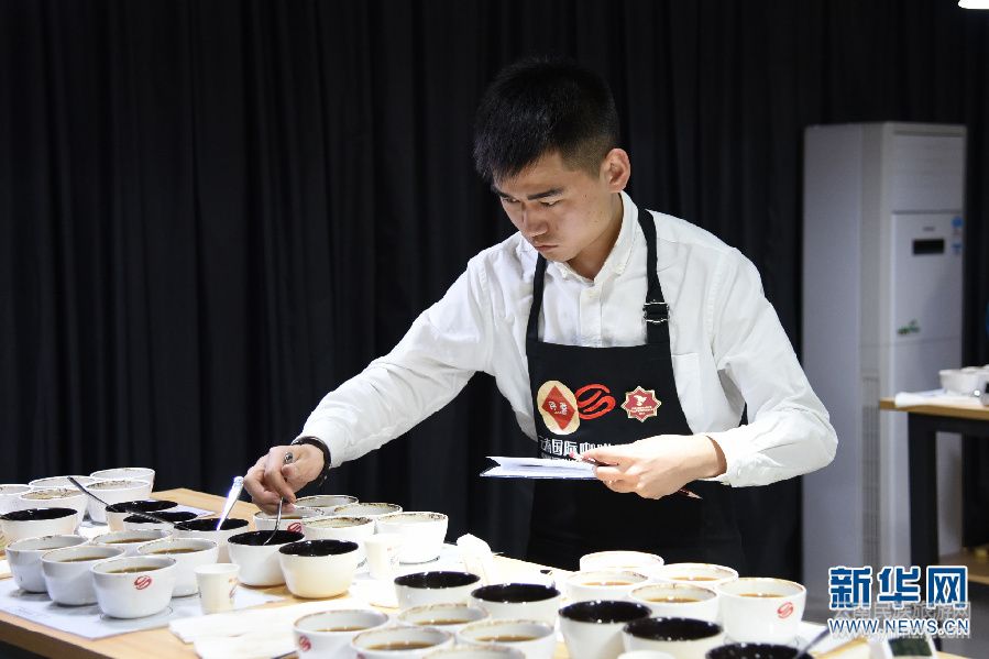 3月9日,評(píng)委在第三屆云南咖啡生豆大賽中品評(píng)咖啡。