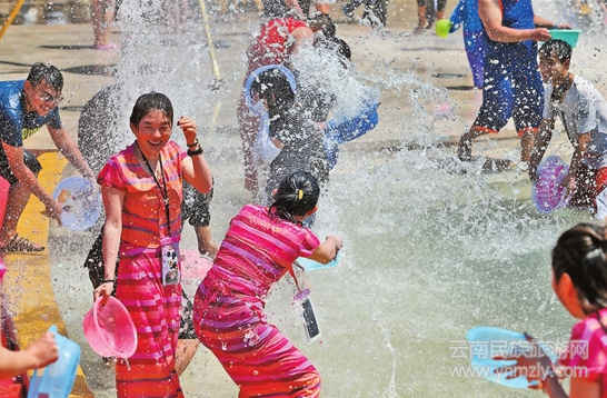 活動(dòng)期間,云南民族村的傣族姑娘和小伙身著節(jié)日盛裝,敲響象腳鼓、跳起嘎光舞,每天在景區(qū)東門入口處灑水祝福,共同歡迎游客的到來(lái)。景區(qū)傣寨、團(tuán)結(jié)廣場(chǎng)等狂歡潑水活動(dòng)的主要場(chǎng)地,少數(shù)民族演員們穿上節(jié)日盛裝,帶領(lǐng)游客盡情潑灑幸福之水。景區(qū)還舉辦了玩水奪標(biāo)、巡游、背新娘運(yùn)水、背竹筒運(yùn)水、跳竹竿運(yùn)水、獨(dú)輪車運(yùn)水等活動(dòng),以及傣族“馬鹿舞、傣拳、章哈”非遺展示。(記者 伍平 周燦)