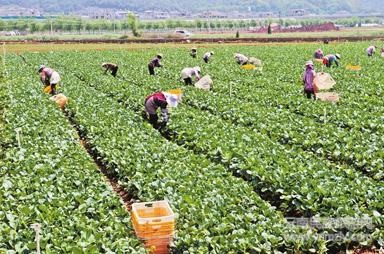 來自廣東投資的云南宏升蔬菜種植發(fā)展有限責任公司成立于2013年4月,是集蔬菜種植、加工、儲運、銷售于一體的現(xiàn)代蔬菜產(chǎn)業(yè)化經(jīng)營龍頭企業(yè)。公司在瀘西縣中樞鎮(zhèn)現(xiàn)有種植基地8000畝,其中設施基地1200畝、露天基地6800畝,并配套噴滴灌、冷庫等設備。蔬菜大多銷往廣東和香港,受到廣大消費者青睞。2017年,公司共生產(chǎn)銷售商品蔬菜2萬噸,實現(xiàn)銷售收入1.2億元。雇用農(nóng)民工1250余人,其中有126名建檔立卡貧困人口,人均增收2.7萬元,輻射帶動周邊農(nóng)戶發(fā)展蔬菜5萬畝。圖為云南宏升蔬菜種植基地。(記者 張彤 攝)