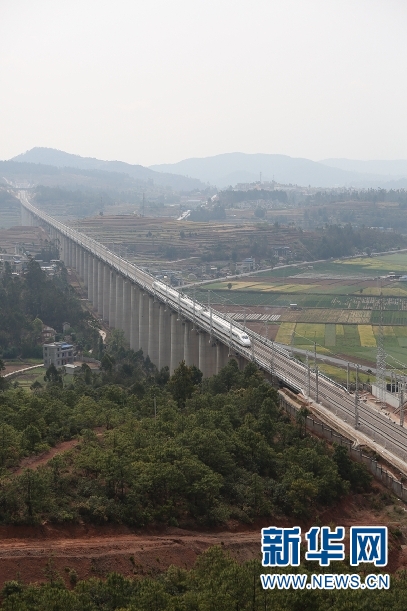 綜合檢測動車飛馳在昆(明)廣(通)大(理)鐵路上。韓富關(guān) 攝