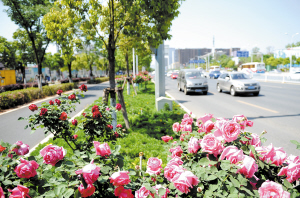 近期,廣福路綠化帶樹樁月季盛放,讓該路段成為一條名副其實的“鮮花大道”。 記者趙偉攝