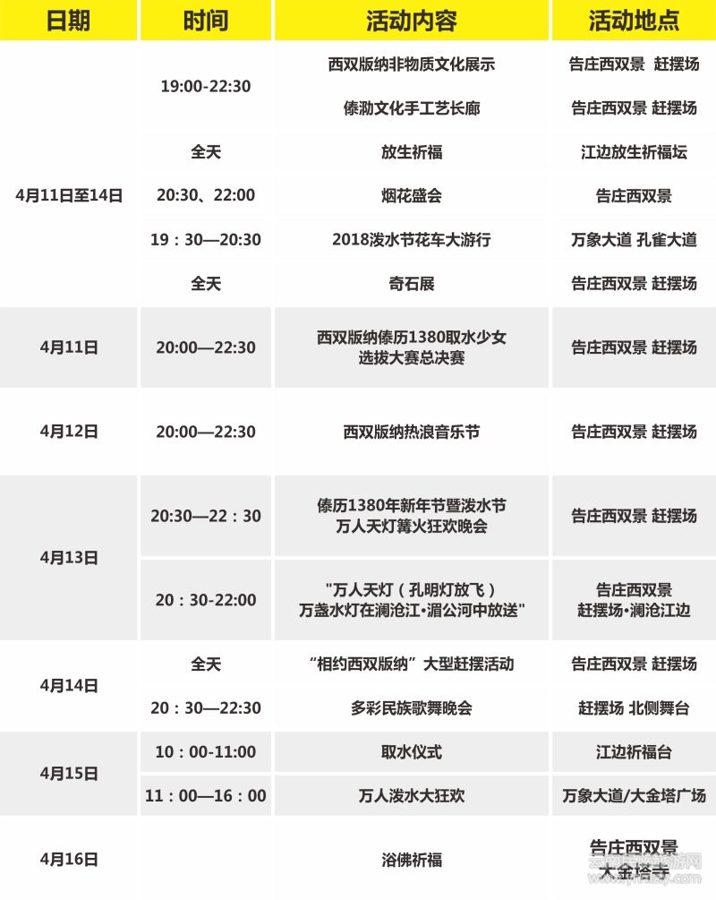 ● 潑水節(jié)來(lái)告莊西雙景體驗(yàn)不一樣的傣歷新年 ( 2018-04-09 )