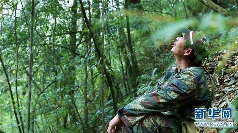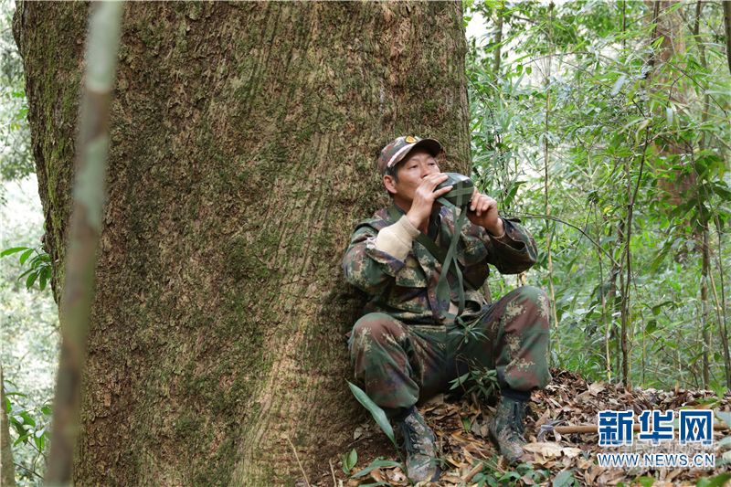 孫應(yīng)祥在巡山途中休息。