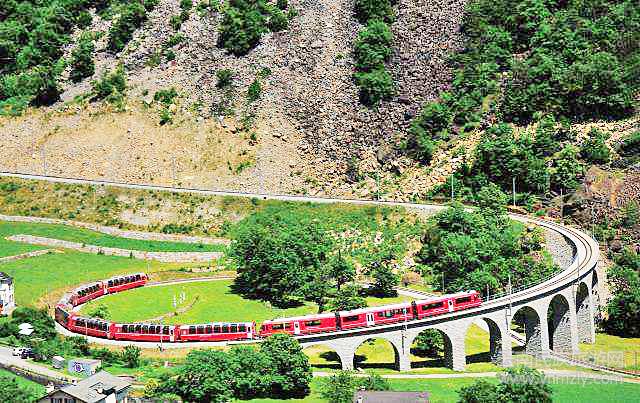 瑞士庫爾,伯爾尼納快車的發(fā)車點之一,270度的全景觀光車廂。2008年,意大利、瑞士跨國聯(lián)合“申遺”,橫貫兩國之間阿爾卑斯山脈的阿爾布拉/伯爾尼納線路成功入選《世界遺產(chǎn)名錄》。伯爾尼納快車可分別以瑞士的庫爾或圣莫里茨為起點,前往終點站意大利的迪拉諾(Tirano)。