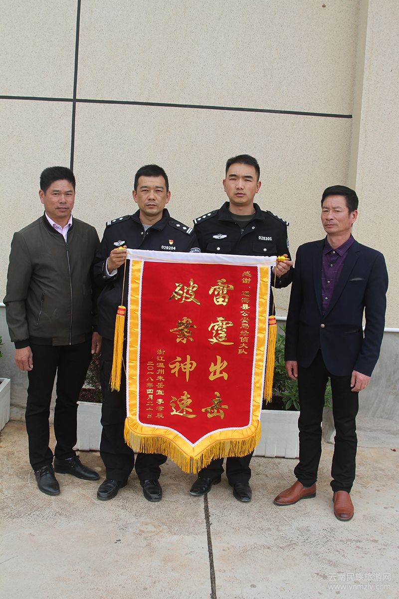 “雷霆出擊破案神速” 近日,通海縣公安局經(jīng)偵大隊(duì)收到一面錦旗。據(jù)了解這是浙江商人朱某為感謝經(jīng)偵大隊(duì)及時(shí)破案為他挽回20萬元經(jīng)濟(jì)損失而特意制作。
