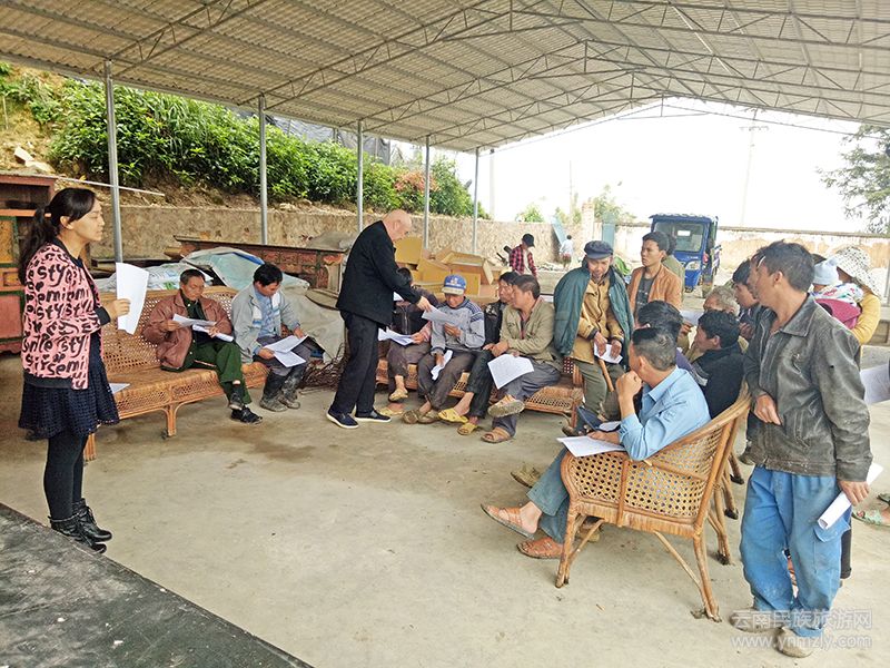 蒙自市委編辦扶貧小組一行圍繞十九大報告內容、創(chuàng)建全國文明城市、社會主義核心價值觀、民族團結政策及“5+5+2”金融扶持政策等方面進行詳細的宣講。同時向27戶貧困戶發(fā)放就業(yè)崗位信息表,為需要外出務工的貧困戶提供就業(yè)幫扶。