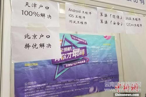 資料圖:2018年4月12日,北京某高校內(nèi)的畢業(yè)生雙選會上,一家企業(yè)貼出了解決戶口的告示。 冷昊陽 攝