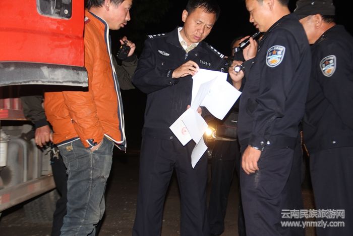 5月12日,局長甫國仁親臨現(xiàn)場指揮,聯(lián)合行政公安、交警、邊防檢查站通過信息化手段密切關(guān)注嫌疑車輛,并迅速調(diào)動警力聯(lián)合林業(yè)站工作人員沿途設(shè)卡堵截。19時26分嫌疑車輛浮出水面進(jìn)入偵查人員視線,局領(lǐng)導(dǎo)立即調(diào)整警力部署,于13日凌晨1點(diǎn)在隆陽區(qū)瓦馬鄉(xiāng)境內(nèi)金六公路將兩輛嫌疑車輛當(dāng)場查獲。