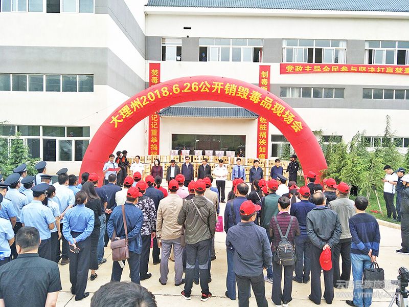 大理州教育局、大理市禁毒委、大理州強戒所領導和禁毒青年志愿者代表分別在啟動儀式上作表態(tài)發(fā)言。儀式結束后,參加啟動儀式的大理州市禁毒委成員單位領導、州市公安機關民警帶領學生代表、禁毒青年志愿者代表一同參觀了禁毒宣傳展板,并在“健康人生·綠色無毒”的禁毒志愿宣傳旗上鄭重地簽名;州市禁毒委成員單位領導、州市公安機關民警及媒體記者,前往公開無害化銷毀毒品的地點,見證了公開無害化銷毀3.85噸毒品的全過程。