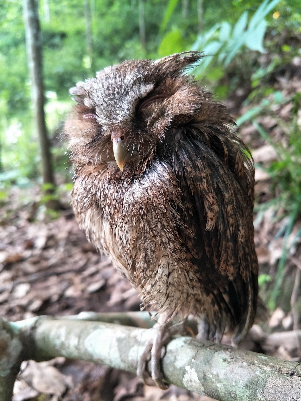經(jīng)詢問,三只小貓頭鷹是扎倮在夜間割膠時發(fā)現(xiàn)的。當(dāng)時,三雙亮晶晶的大眼睛引起了他的注意,走近一看,竟是三只小貓頭鷹落在地上的樹葉堆中。因怕小鳥在夜間受到其他動物傷害,扎倮隨即把小貓頭鷹帶回家,并聯(lián)系了森林公安民警前來救助。