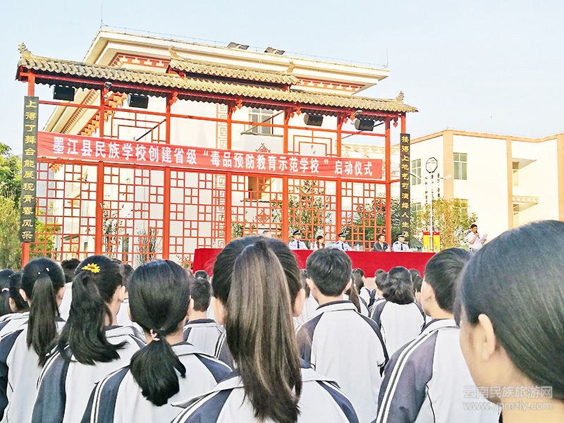 “罌粟花,海洛因,禍之首,殃家園;染毒癮,受折磨,頭撞墻,口吐沫;面饑黃,瘦和夭,吸過量,見閻王……”這首《禁毒三字謠》,是墨江一小的孩子們,一筆一劃地工整寫在手抄報(bào)上的。因獲得一等獎(jiǎng),被制作成展板,放在了校園中心的古建筑——天君閣內(nèi)。