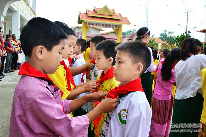在少先隊(duì)入隊(duì)儀式上,老隊(duì)員為新隊(duì)員佩戴紅領(lǐng)巾,輔導(dǎo)員帶領(lǐng)新隊(duì)員宣誓。隨即對(duì)優(yōu)秀少先隊(duì)員、優(yōu)秀班干部、三好學(xué)生等進(jìn)行表彰。大家一起欣賞了由銀井邊檢站和銀井小學(xué)帶來的精彩節(jié)目。中緬雙方學(xué)生、家長(zhǎng)、來賓、邊檢站的官兵們進(jìn)行了拉拔河等游戲。緬甸的同學(xué)們都超水平發(fā)揮,大家給他們送去了熱烈的掌聲。同學(xué)們跑著笑著,沉浸在歡樂的海洋。通訊員 楊騰榮(文章來源環(huán)球游報(bào)2018年6月8日第1143期A5版)