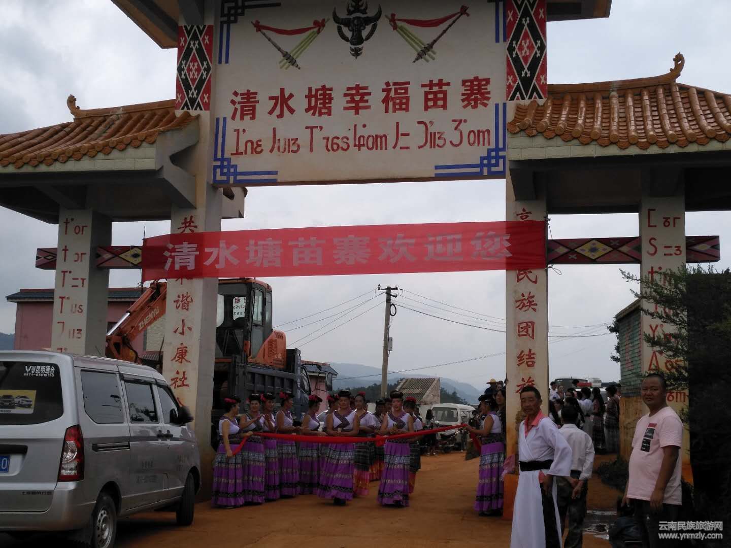 北緯25°18'17",東經(jīng)102°3'31"。青山疊翠,紅花怒放,昆明市五華區(qū)西翥街道辦事處瓦恭社區(qū)清水塘苗寨。