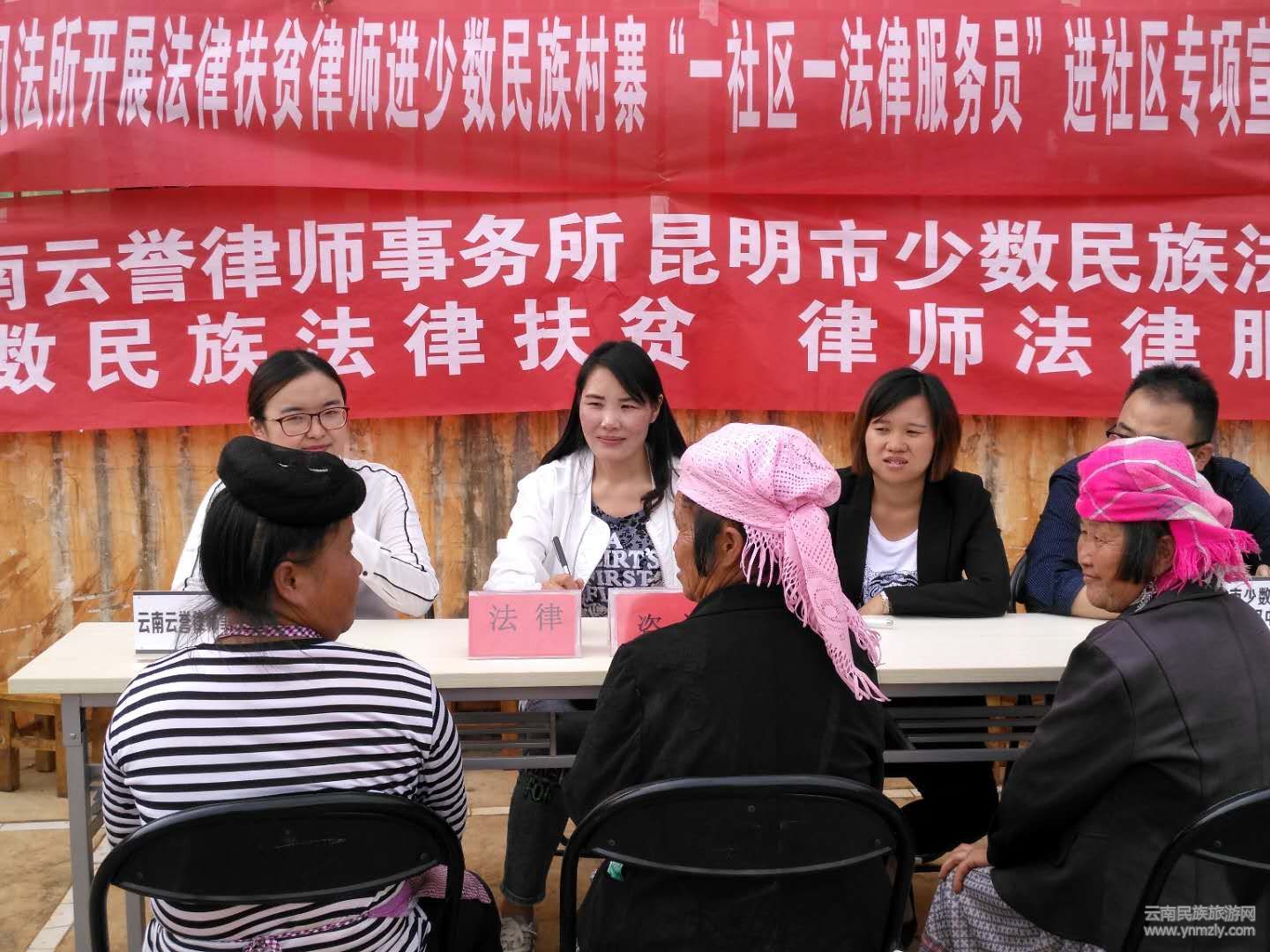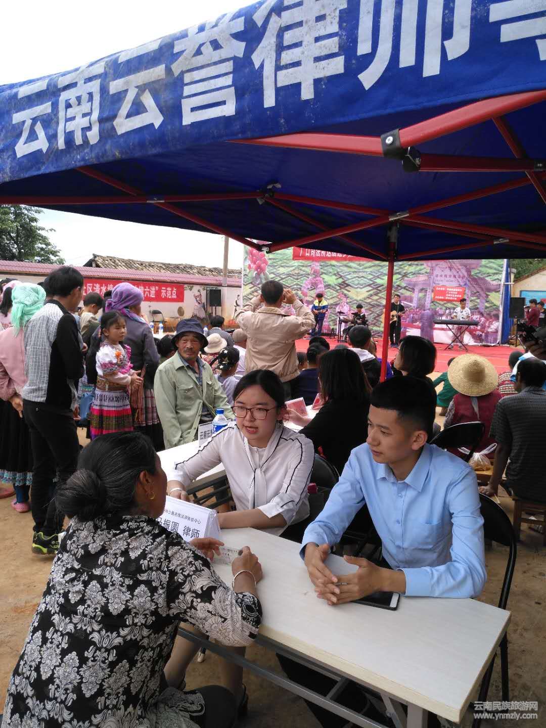 在法治文藝演出的同時,云南云譽律師事務(wù)所、云南少數(shù)民族維權(quán)中心的律師還在現(xiàn)場搭起帳篷,現(xiàn)場解答民族群眾的法律咨詢。