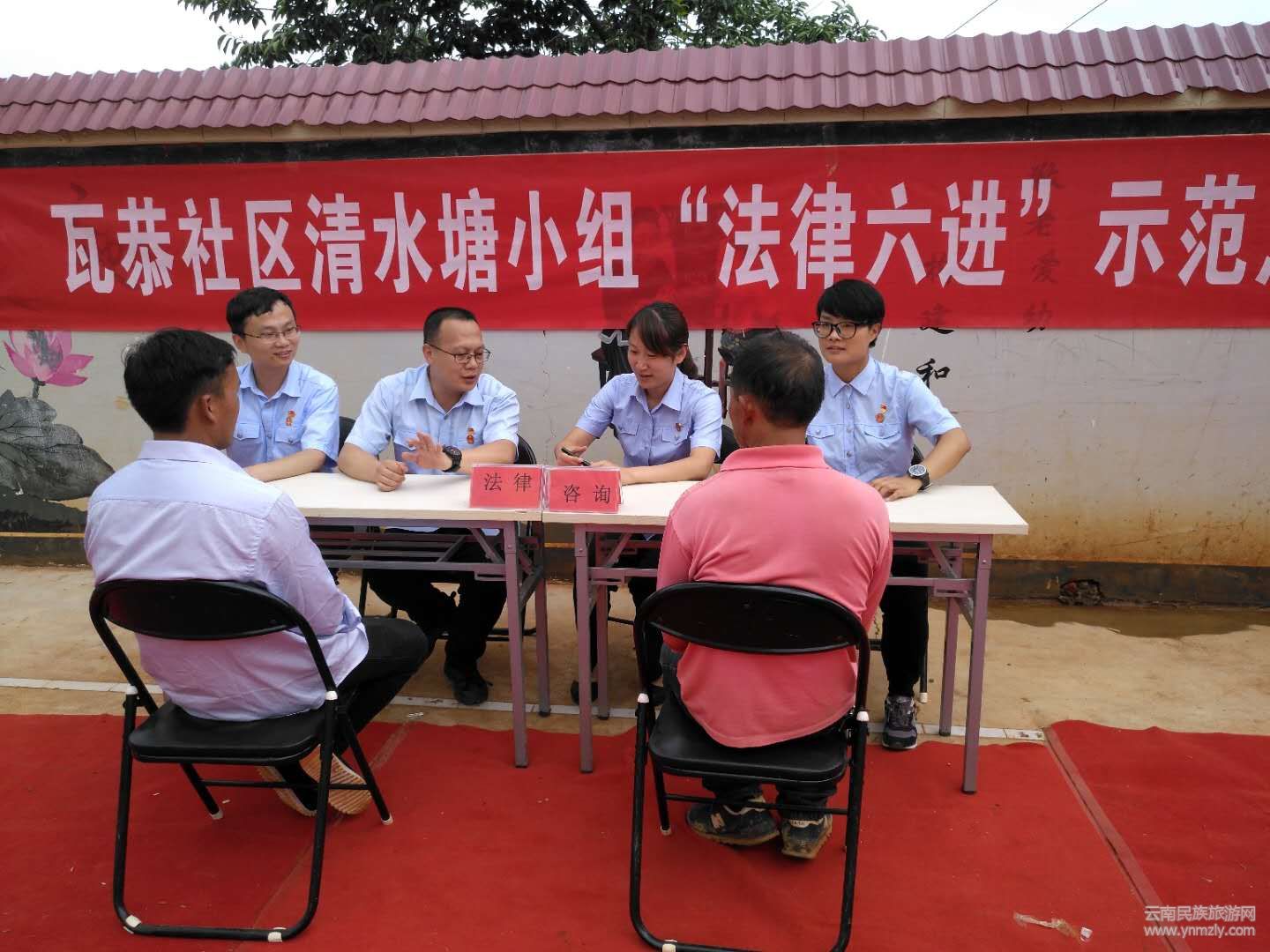 隨著經(jīng)濟社會的發(fā)展,苗族群眾的生活質(zhì)量不斷提升,精神文化需求不斷提高,法制建設(shè)顯得十分重要。在西翥街道綜治辦、廠口司法所、五華區(qū)普法辦的關(guān)心支持下,瓦恭社區(qū)申報了“法律六進示范點”,并把清水塘苗寨作為“法律進少數(shù)民族村”示范點。