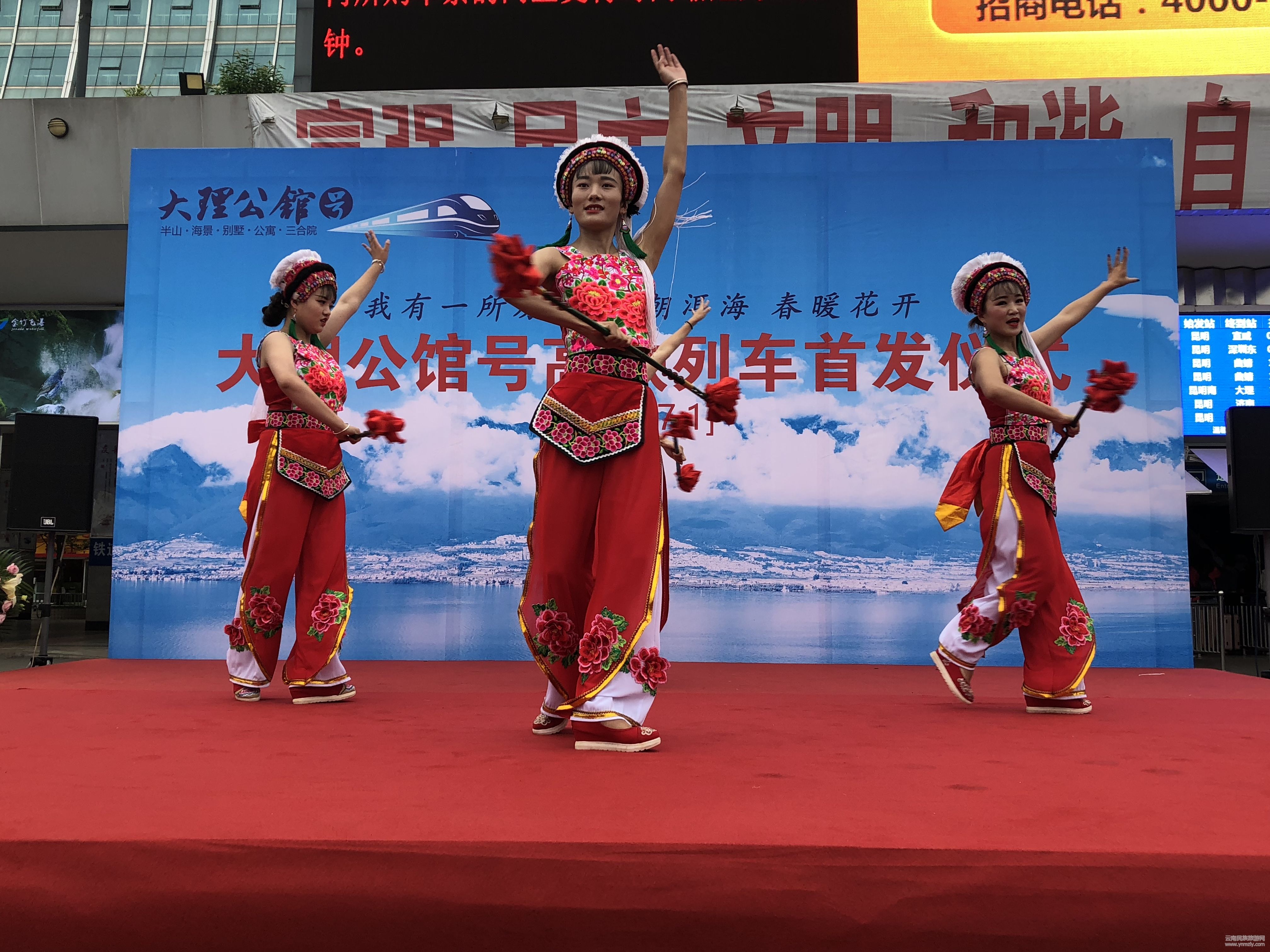 據(jù)了解,“大理公館號(hào)”列車由大理佳利集團(tuán)冠名,隨車而行的大理佳利集團(tuán)佳利藝術(shù)團(tuán)金花阿鵬用頗具大理白族風(fēng)情的歌舞,近距離的為旅客展示著大理的民族服飾以及大理這個(gè)能歌善舞民族的獨(dú)特魅力,為“大理公館號(hào)”上的乘客帶來(lái)不一樣的奇妙之旅。