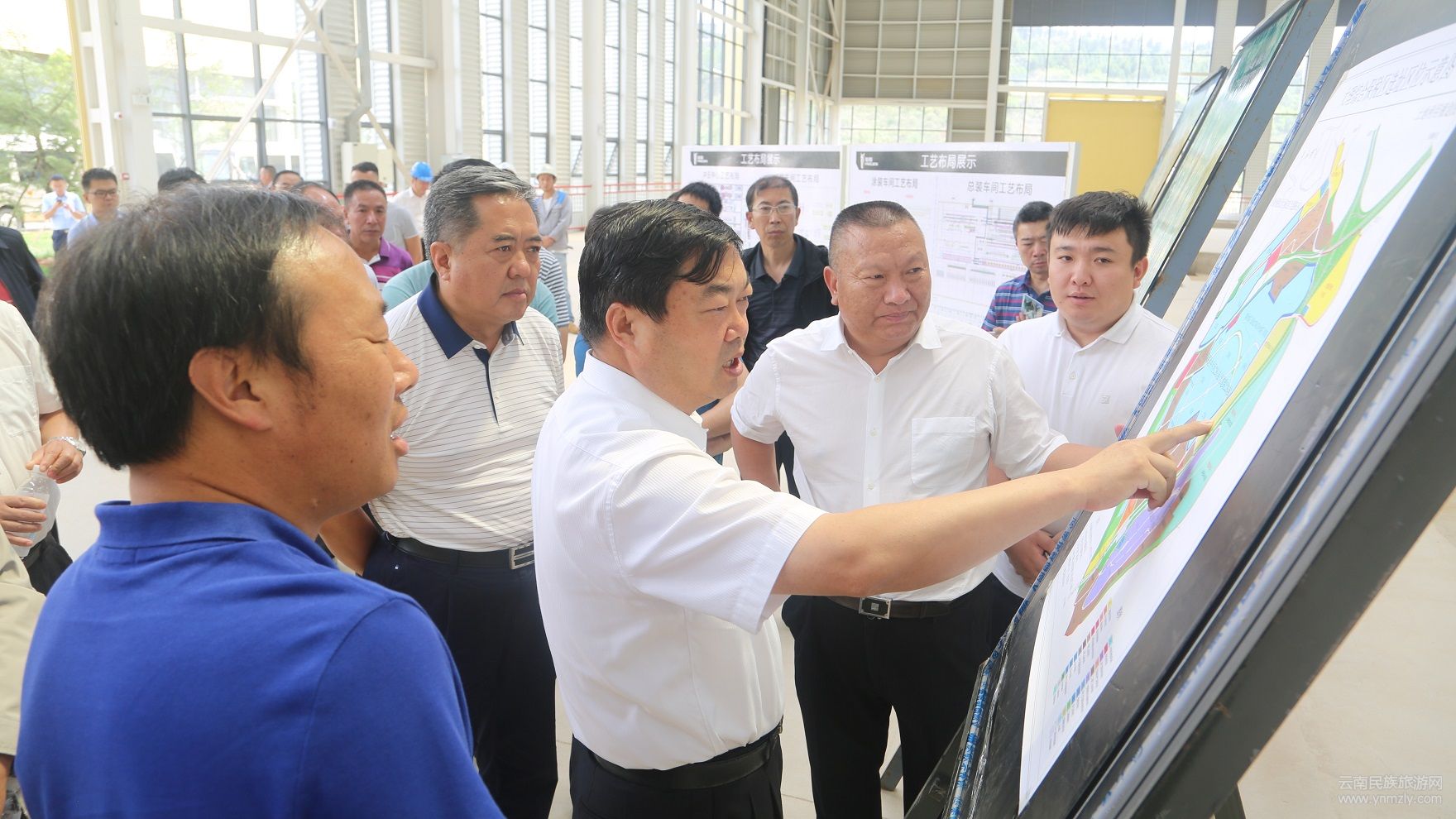 在鉑駿集團(tuán)鳳儀生產(chǎn)基地,楊健一行參觀了新研發(fā)的新能源車、概念車和皮卡車等多款車型,全體參觀人員均感振奮。在該集團(tuán)新建辦公大樓,楊健主持召開鉑駿集團(tuán)重大項(xiàng)目現(xiàn)場(chǎng)推進(jìn)會(huì)議。大理經(jīng)開區(qū)黨工委書記、管委會(huì)主任李繼顯匯報(bào)了上登整車制造總部基地和汽車零部件配套產(chǎn)業(yè)園項(xiàng)目進(jìn)展情況。目前,經(jīng)開區(qū)已經(jīng)完成上登汽車產(chǎn)業(yè)園一期標(biāo)準(zhǔn)廠房約140000平方米的建設(shè),并完成了初步驗(yàn)收,正在對(duì)發(fā)現(xiàn)的問題進(jìn)行整改,計(jì)劃于7月下旬組織終驗(yàn),即可交付給云南鉑駿實(shí)業(yè)有限公司。