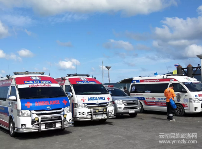 ▲2018年7月6日,泰國(guó)普吉島查龍碼頭,救援車輛??吭诖a頭等待。卜志輝 攝