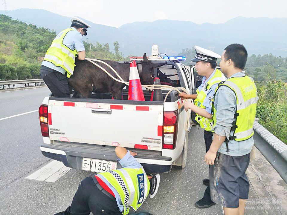 8月14日16時許,昆楚交警大隊大紅田警區(qū)接到過路駕駛?cè)藞缶?,稱在昆楚高速公路恐龍山服務區(qū)路段右側(cè)車道上有一頭毛驢,橫站在路上,一動不動,十分危險。