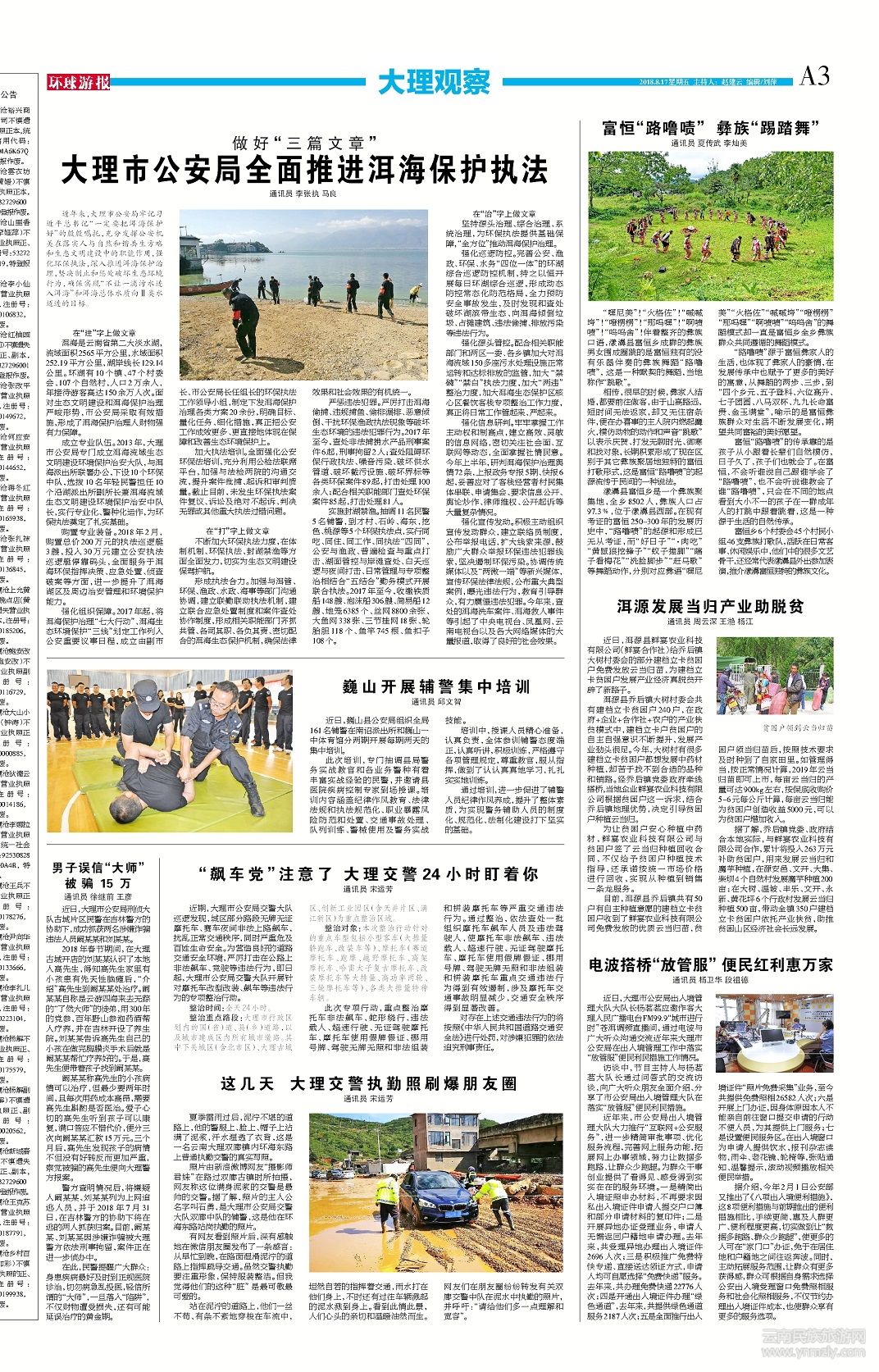 做好“三篇文章” 大理市公安局全面推進(jìn)洱海保護(hù)執(zhí)法